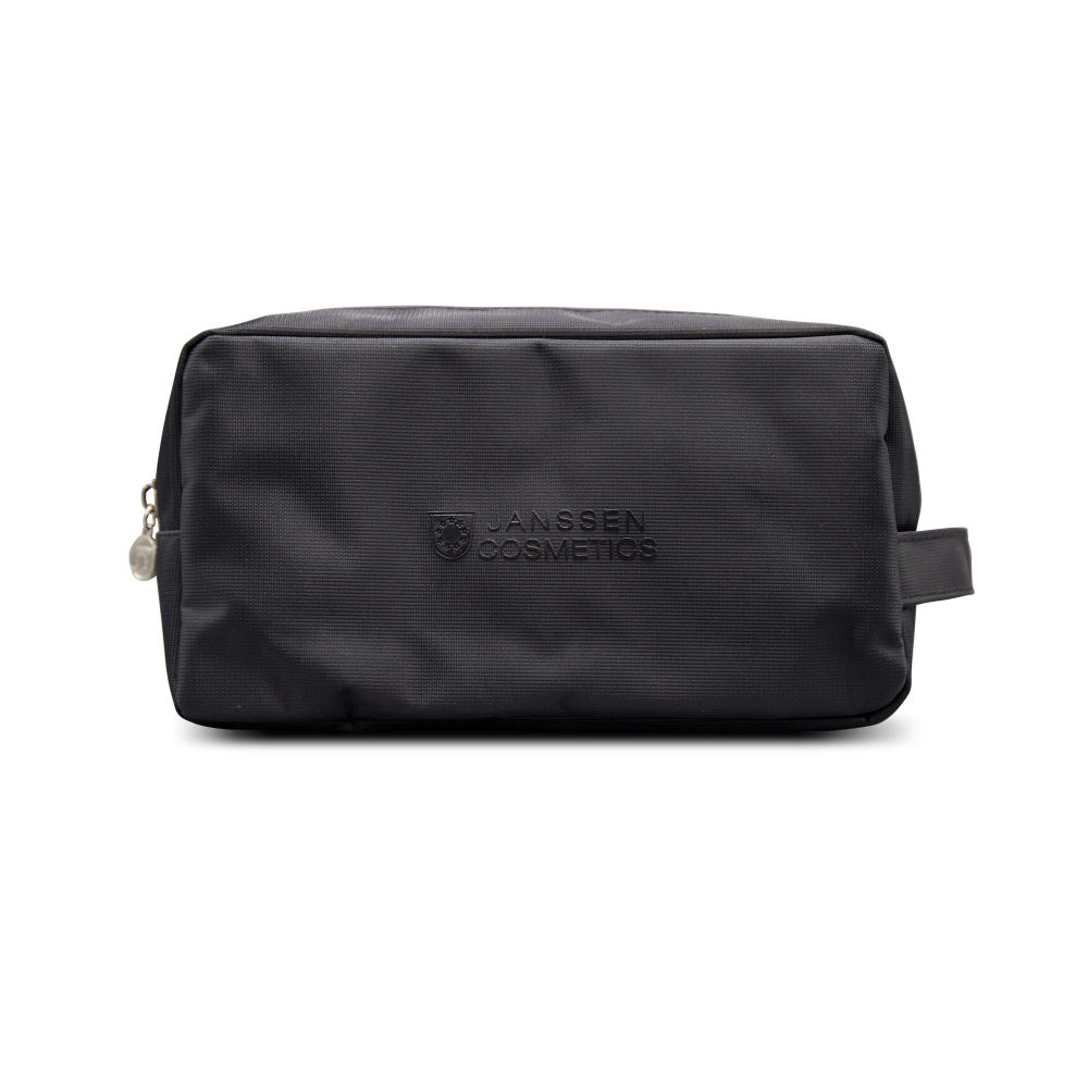 Косметичка выполнена в классическом чёрном цвете с фирменным логотипом Janssen, что придаёт ей элегантный и современный вид.