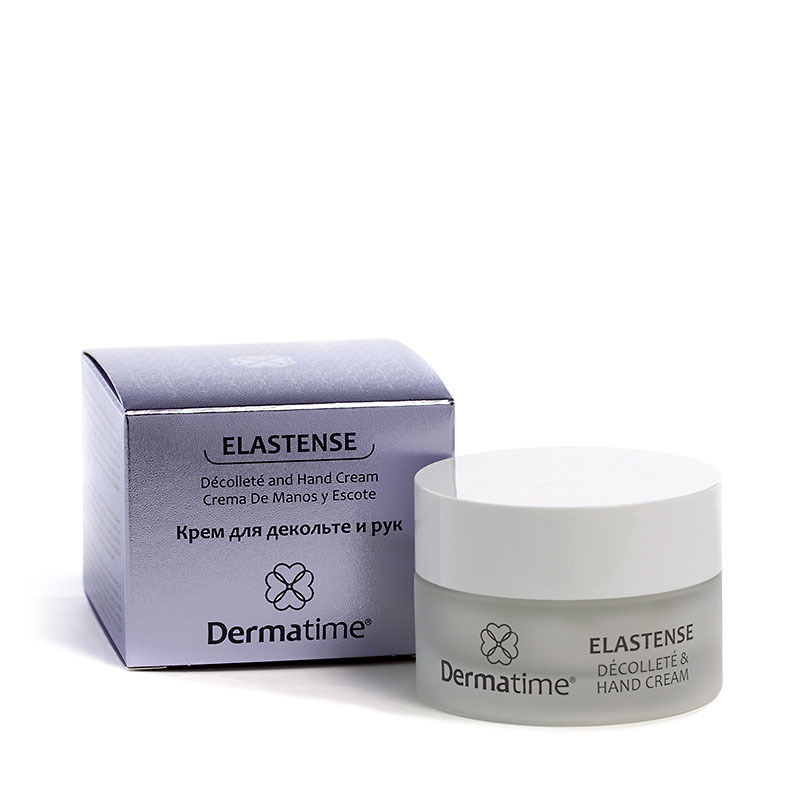 Крем для декольте и рук Dermatime на основе биопептидов эластина интенсивно увлажняет, смягчает и питает кожу, стимулирует ее регенерацию и обновление. За счет насыщенного состава улучшает тургор, тонус, эластичность и упругость тканей, обеспечивает структурное обновление дермы и разглаживание морщин. Оказывает эффект лифтинга, дарит коже ощущение комфорта и сияние молодости.