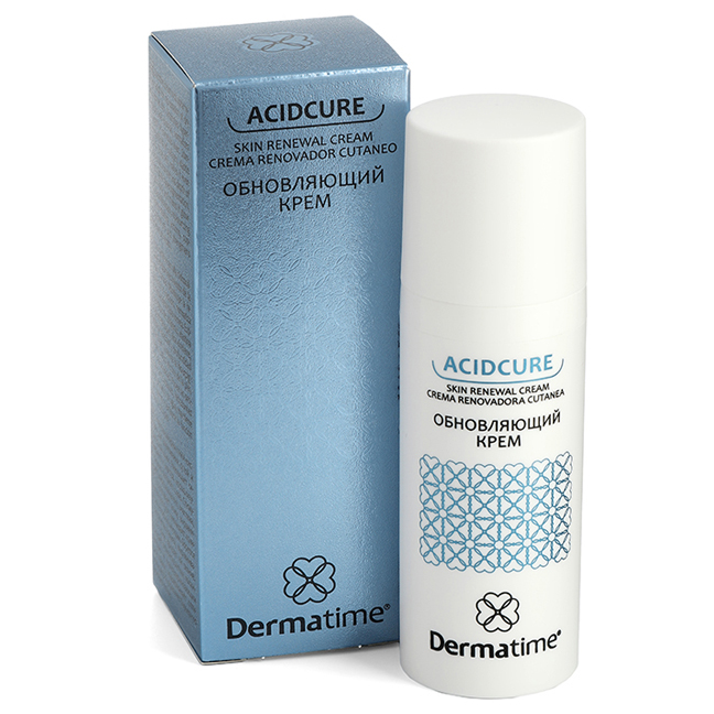 Обновляющий крем Dermatime - экстраэффективное омолаживающее средство для увядающей нормальной и сухой кожи. Его новейшая формула на основе АНА-кислот (гликолевой, молочной и лимонной) интенсивно стимулирует клеточное обновление и реструктуризацию дермального матрикса, индуцирует неоколлагеногенез и эластинообразование, активирует выработку гликозаминогликанов и синтез церамидов эпидермиса. Способствует укреплению и уплотнению коллагенового каркаса, разглаживанию и лифтингу кожи, выравниванию ее микрорельефа и тона. Стимулирует эксфолиацию клеток эпидермиса, улучшая цвет лица и осветляя тон кожи, устраняя гиперпигментацию. Обеспечивает ревитализацию и омоложение кожи, защищает ее от действия кислородных радикалов, оказывает увлажняющее и пластифицирующее действие.