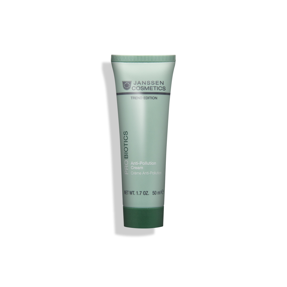 Защитный крем с пробиотиком (Probiotics Anti-Pollution Cream) от Janssen Cosmetics, 50 мл — антивозрастной крем с нежной текстурой и приятным ароматом, предназначенный для ежедневного ухода за кожей, подвергающейся воздействию экологического стресса. Крем быстро нормализует состояние раздраженной и чувствительной кожи, увлажняя, успокаивая, питая и смягчая её. Благодаря активным компонентам, он предотвращает повреждения, вызванные загрязненной окружающей средой и воздействием синего света (HEV-излучения).