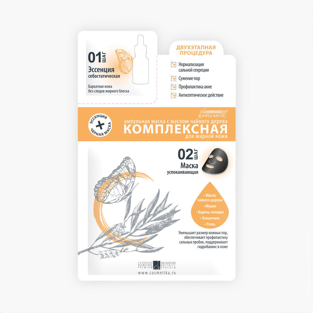 Ампульная маска с маслом чайного дерева Комплексная для жирной проблемной кожи оказывает сильный противовоспалительный и антисептический эффект. Подсушивает, избавляет от жирного блеска и регулирует деятельность сальных желез. Эффективно борется с любыми формами акне. Способствует обновлению клеток для восстановления при постакне. Делает кожу чистой и матовой, убирает покраснения и раздражения, предотвращает появление воспалений. Не рекомендован при появлении сыпи, зуда или раздражения от применения маски, не использовать на коже с проявлениями дерматита или повреждениями.
