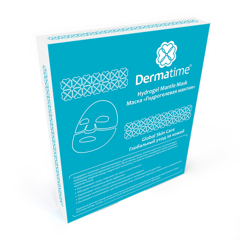 Маска «Гидрогелевая мантия» Dermatime обладает запатентованной формулой и насыщенным составом на основе высокоактивных антивозрастных и восстанавливающих компонентов. Интенсивно увлажняет, тонизирует, разглаживает кожу, устраняет покраснение и воспаление, укрепляет защитный барьер. Стимулирует клеточную регенерацию, оказывает эффект лифтинга, способствует выведению токсинов из тканей. Оказывает охлаждающее и седативное действие на кожу, предотвращает оксидативный стресс. Превосходно восстанавливает кожу после агрессивного влияния внешней среды (холода, ветра, солнца) и травматичных косметологических манипуляций.