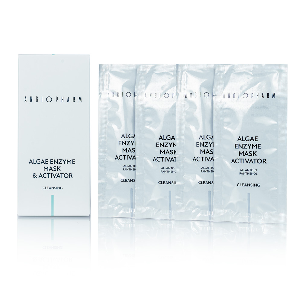 Набор Энзимно-водорослевая маска + Активатор для энзимно-водорослевой маски Ангиофарм, 4Х15 мл. Двухкомпонентная маска деликатно эксфолиирует омертвевшие частицы кожи, очищает и стягивает поры, ликвидирует гиперкератоз и черные точки, сглаживает тон и микрорельеф кожи. Водоросли оказывают витаминизирующее действие на кожу, снабжают ее микроэлементами, способствуют детоксикации, предотвращают оксидативный стресс, активируют выработку опорных белков кожи и усиливают клеточный метаболизм. Устойчивая форма витамина С предотвращает свободнорадикальное повреждение кожи, осветляет ее тон, дарит ей нежное сияние. Бетаин, аллантоин и фитополисахариды улучшают гидробаланс кожи, способствуют выработке натурального увлажняющего фактора и церамидов, укрепляют эпидермальный барьер. Маска снижает секрецию сальных желез, сужает поры, устраняет закрытые комедоны. Набора хватает для проведения 2 процедур.