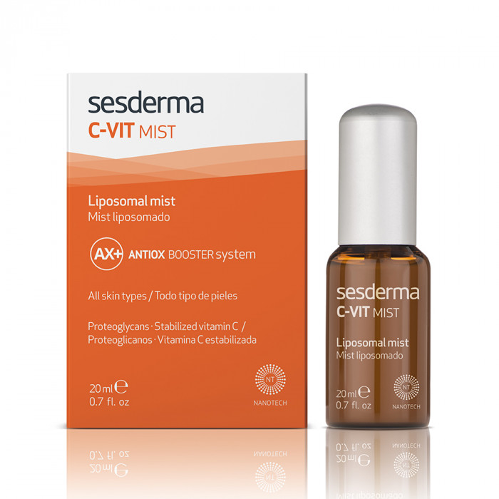 Липосомальный спрей-мист Сесдерма с витамином С, экстрактом сладкого апельсина и антиоксидантной системой Antiox booster с гингко билоба – это эффективное ухаживающее средство в удобной форме спрея. Увлажняет, защищает от фотостарения, имеет выраженный антиоксидантный эффект. Средство создано с уникальной технологией NANOTECH™, которая использует для транспортировки целебных веществ липосомы наноразмера – такие липидные контейнеры настолько малы, что способны быстро проникать прямо в глубокие слои кожи, доставляя туда активные вещества. Липосомный спрей-мист Сесдерма всего за несколько пшиков обеспечивает вашей коже мощный витаминный заряд. Подходит для ухода за сухой кожей.
