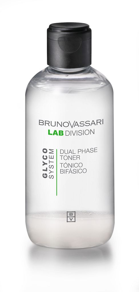 Двухфазный тоник Bruno Vassari линии Glyco System содержит 8% гликолевой кислоты и активный компонент – кукурузный крахмал, - которые способствуют матированию поверхности кожи, глубокому очищению и сужению пор. Увлажняющий комплекс поддерживает гидробаланс верхних слоев эпидермиса. Средство состоит из двух фаз, которые необходимо смешать непосредственно перед применением, взболтав флакон.