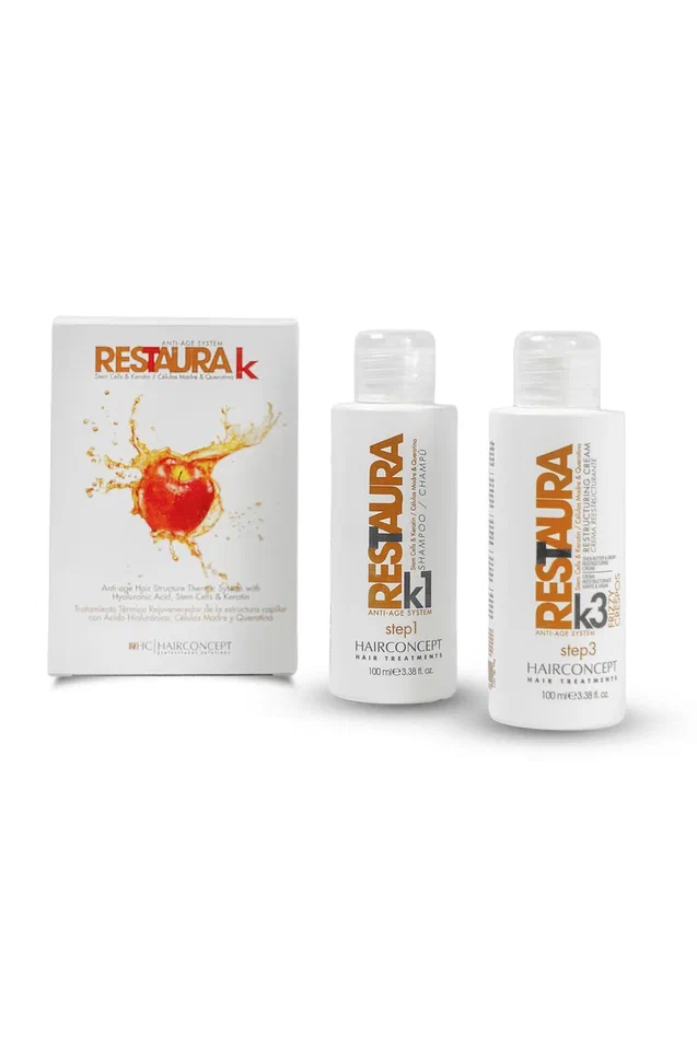 Мини-набор для восстановления со стволовыми клетками подходит для салонного ухода и домашнего применения. Используется в качестве компонента антивозрастной восстанавливающей программы. Лечебные крем-сливки для толстых волос разработаны специально для воздействия на поврежденные участки. Питают, увлажняют, дарят блеск и гладкость. В составе натуральные компоненты – карите и аргана, которые позволяют добиться уникального эффекта на непослушных волосах, подтвержденного лабораторными испытаниями.