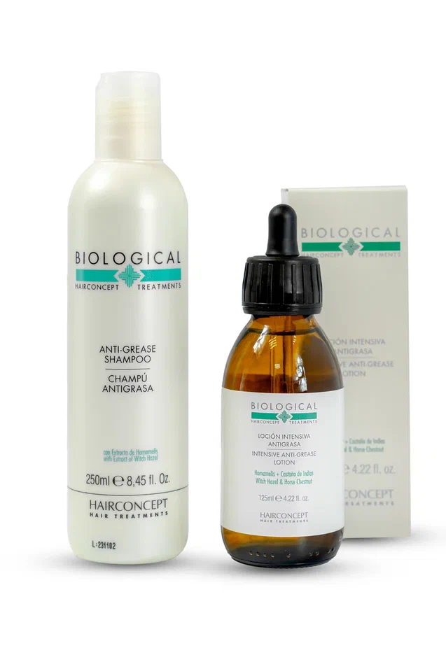 Шампунь для жирных волос и кожи головы серии BIOLOGICAL 250 мл. Нанесите шампунь на влажные волосы и кожу головы, слегка помассируйте. Оставьте на 5 минут, затем смойте тёплой водой. Лосьон для пилинга кожи головы "От жирности" 125 мл. Нанесите лосьон на чистую сухую кожу головы с помощью пипетки (5 мл) или спендора (2 мл). Помассируйте кожу головы кончиками пальцев. Не смывайте. Применяйте 1 раз в 2 дня.
