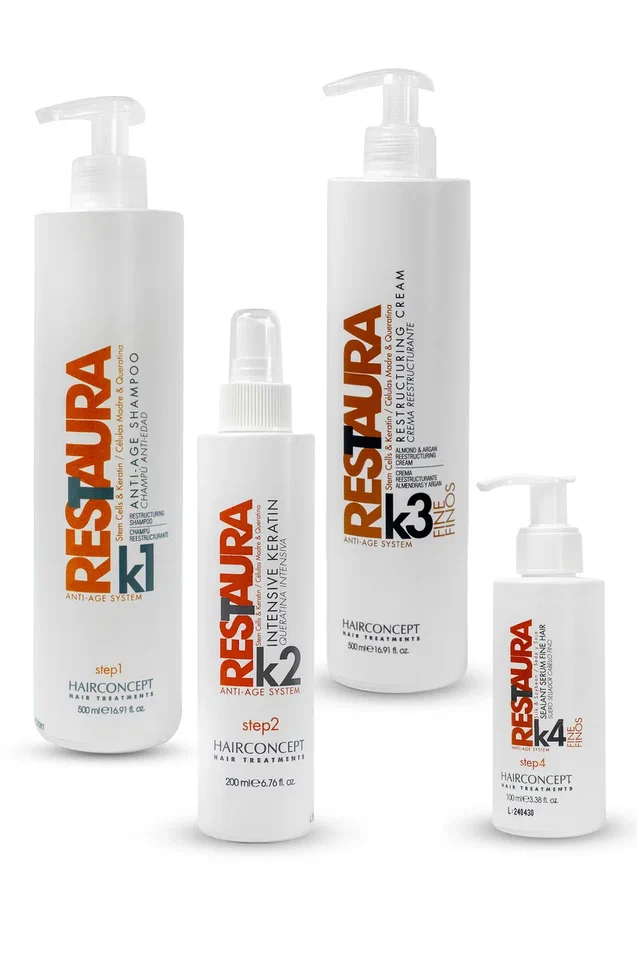 Шампунь-реконструктор К1, Лосьон кератин интенсив К2, Восстанавливающий крем (сливки) К3, Сыворотка с протеином шелка К4: