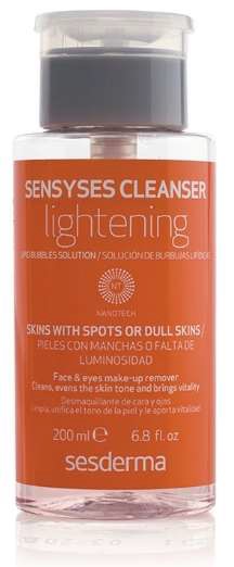 Липосомальный лосьон для снятия макияжа Sesderma, разработан с использованием технологии NANOTECH™, которая позволяет доставить полезные вещества в глубокие слои кожи в ускоренные сроки, обеспечивая высокоэффективный уход вашей коже. Содержит панетнол, бутилрезорцин, азелоглицин и витамин С. Лосьон удаляет как водорастворимые, так и жирорастворимые загрязнения, выравнивает общий тон кожи, уменьшает проявления гиперпигментации и наполняет сиянием каждую клеточку вашей кожи.