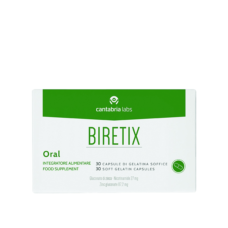 Комплекс для профилактики акне "БИРЕТИКС" Cantabria Labs - мультиактивный комплекс-адъювант для терапии воспаленных форм акне. Благодаря включению в состав высокоактивных биокомпонентов оказывает на кожу выраженное оздоравливающее действие: предотвращает развитие воспалительных явлений и ускоряет их разрешение, подавляет активность условно-патогенной микрофлоры, снижает активность сальных желез. Входящий в состав цинк в легкоусвояемой форме улучшает клеточный метаболизм и обновление, регулирует пролиферативные процессы в коже, предотвращает оксидативный стресс. Никотинамид нормализует обменные процессы в коже, улучшает цвет лица. В состав Biretix Oral входят мощные антиоксиданты - супероксиддисмутаза (SOD), витамин Е и селен, нейтрализующие активность кислородных радикалов, препятствующие старению кожи и способствующие ее омоложению.