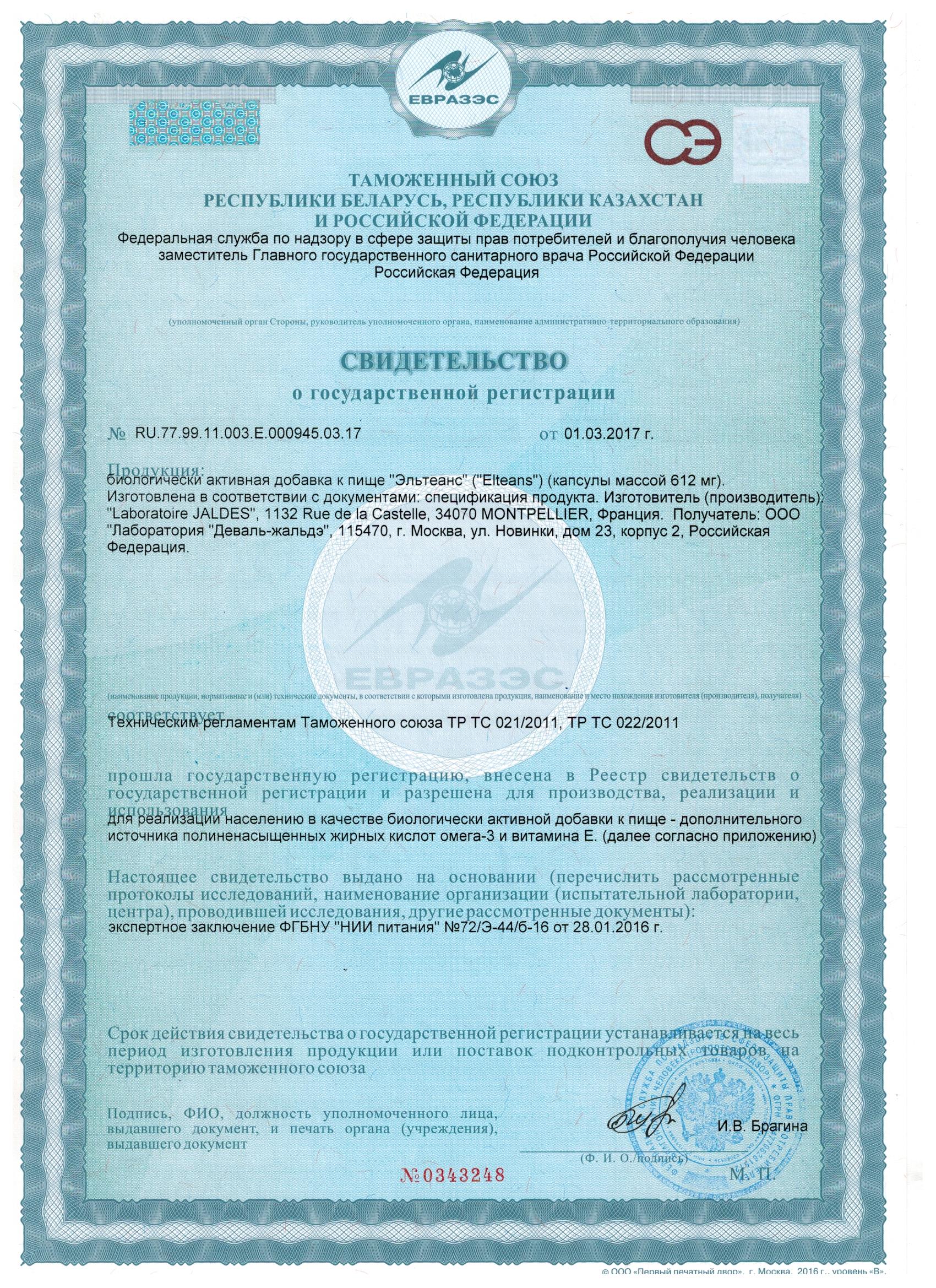 Эльтеанс капсулы содержат ненасыщенные жирные кислоты Омега-3, Омега-6. Омега-3 включается в мембраны клеток эндотелия (внутренней поверхности) сосудов и улучшает состояние сосудов всего организма, а также состояние капиллярной сети кожи. Омега-6 осуществляет две важнейшие функции эпидермиса кожи - это восстановление рогового слоя и минимизацию потери воды. Организм человека не способен синтезировать эти кислоты, поэтому они обязательно должны поступать извне. Благодаря ненасыщенным жирным кислотам Эльтеанс поддерживает красоту кожи, восстанавливает сухую кожу и помогает при воспаления кожи, укрепляет сосуды кожи. Препарат Эльтеанс рекомендован в процессе беременности и кормлении грудью. Применяется для профилактики и лечения сердечнососудистых заболеваний, для улучшения памяти, защиты от депрессивных состояний, профилактика болезни Альцгеймера.