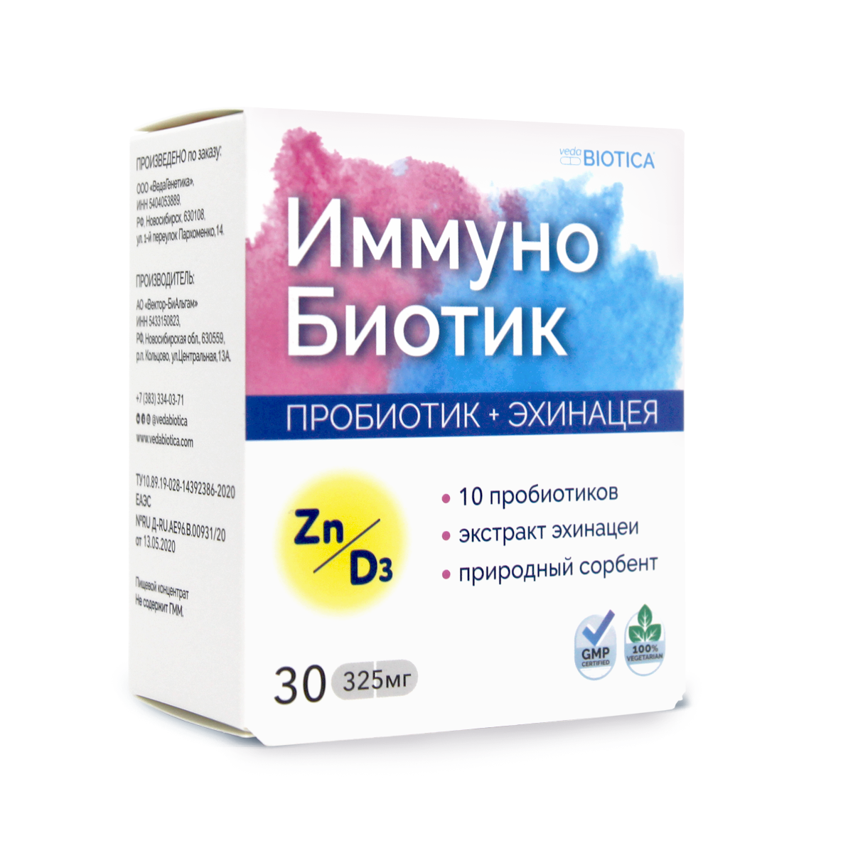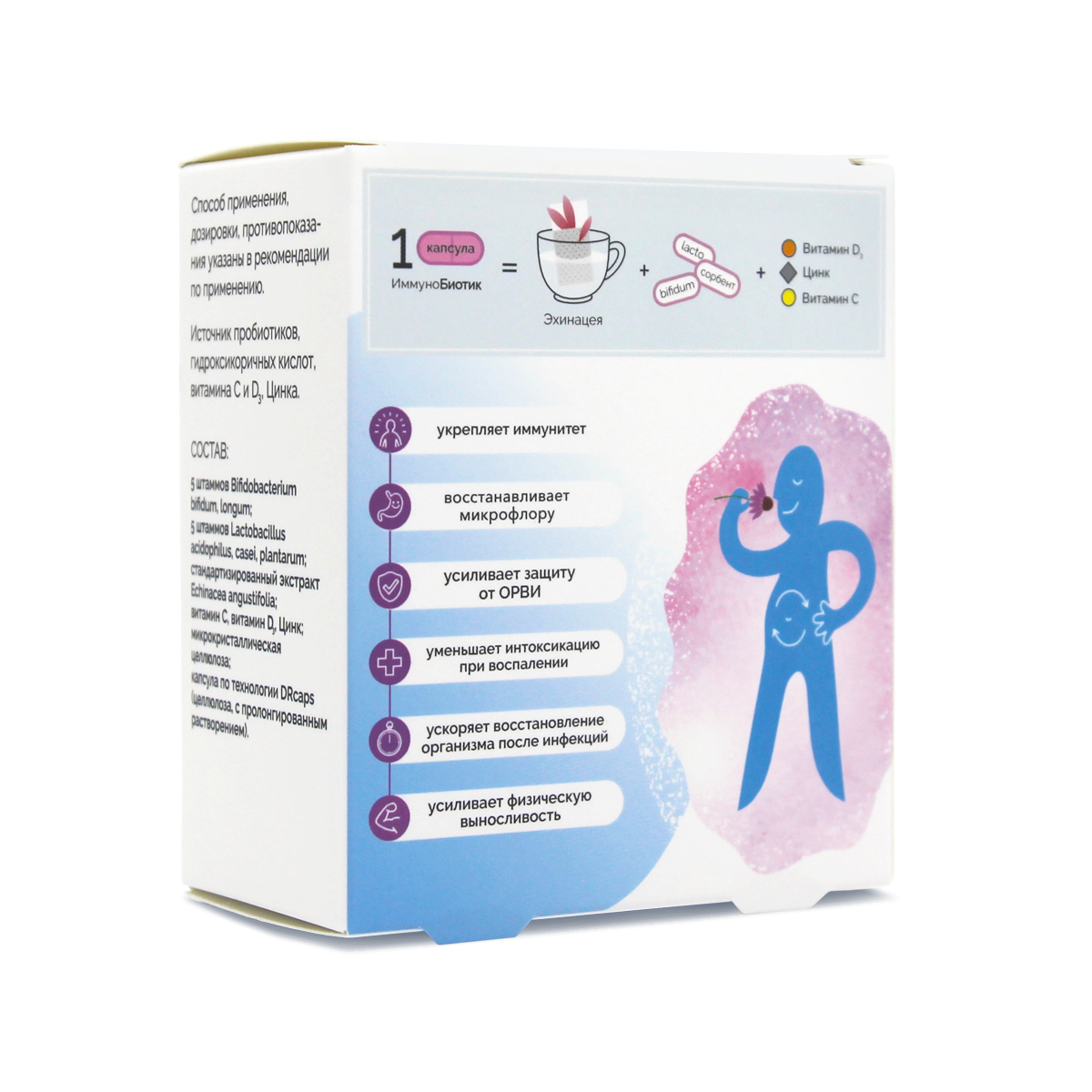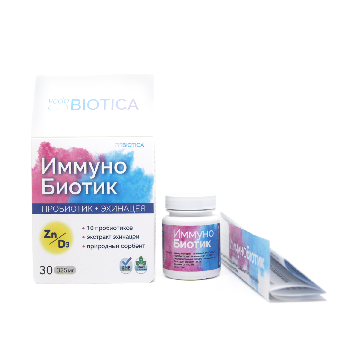 ИммуноБиотик - первый Российский препарат который содержит активные компоненты растен6ия эхинацеи (гидроксикоричные кислоты) и плюс 11 штаммов полезных бактерий, которые оказывают мощнейший синергетический эффект в восстановлении микрофлоры кишечника и иммунной системы человека. Очень важный факт взаимодействия микробиоты и иммунитета человека подтолкнул российских ученых к разработке нового класса препаратов – фитобиотиков. Эти препараты сочетают в себе полезные бактерии и активные компоненты целебных растений.