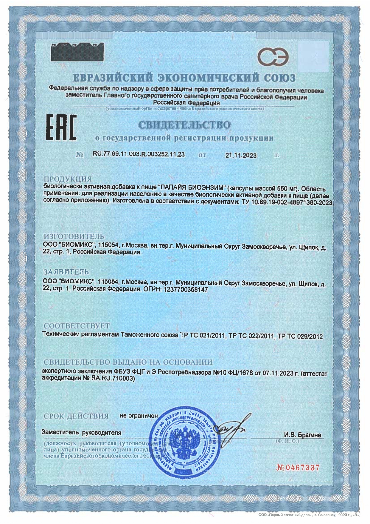 - натуральный фермент папаин в сочетании с уникальным комплексом БИОМИКС;