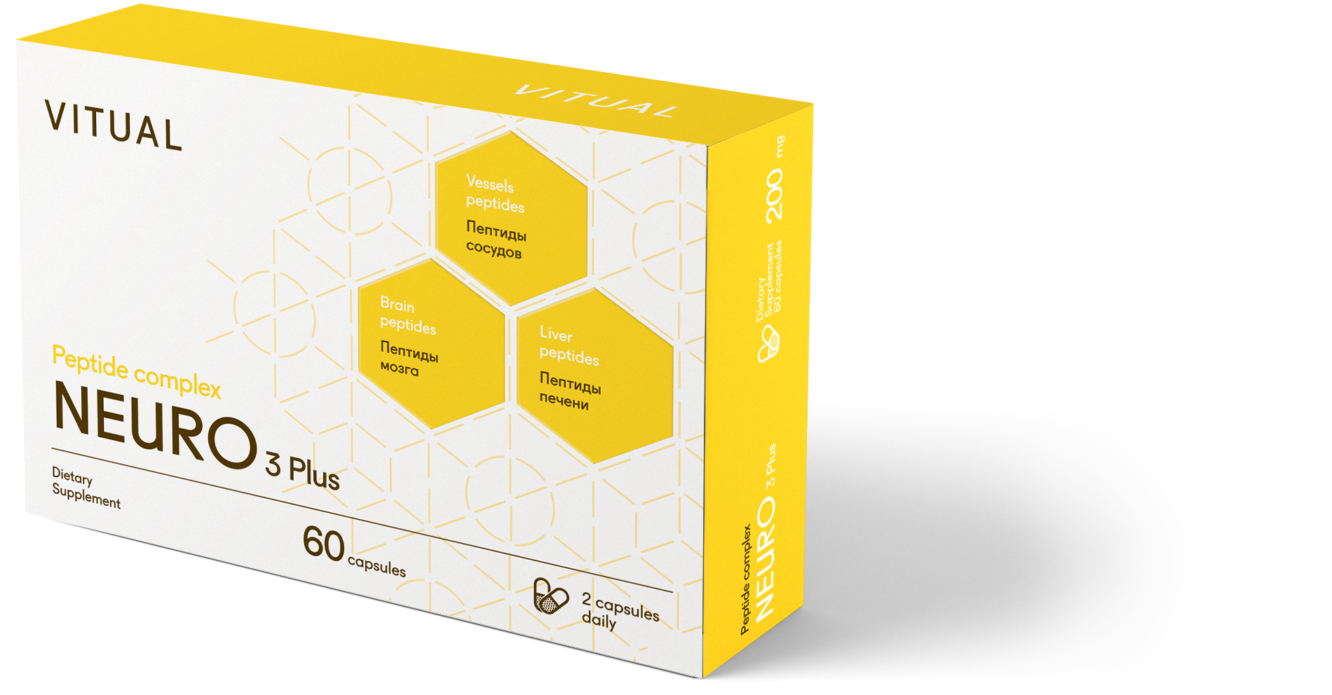 ДАЙТЕ ЗАЩИТУ СВОЕЙ НЕРВНОЙ СИСТЕМЕ Пептидный комплекс NEURO 3 Plus — это натуральное и эффективное средство, которое разработано для восстановления и защиты нервной системы, а также профилактики патологий. Клинические испытания доказали, что при помощи пептидов можно нормализовать синтез важнейших нейромедиаторов, которые участвуют в передаче нервных импульсов, формировании нейронных связей, а также важнейших когнитивных процессах — памяти, мышлении, способности к обучению. Известно, что нервные клетки не способны делиться. Но пептиды активно участвуют в их защите, запуская процессы внутриклеточного синтеза белка. Это значит, что при использовании комплекса NEURO 3 Plus восстанавливаются структурные компоненты клеток, и они повышают свои резервы, необходимые для адекватного функционирования центральной нервной системы. Поэтому пептиды — это шанс снизить развитие возрастных дегенеративных процессов, восстановиться после стресса или болезней, защититься от атеросклероза мозговых сосудов.