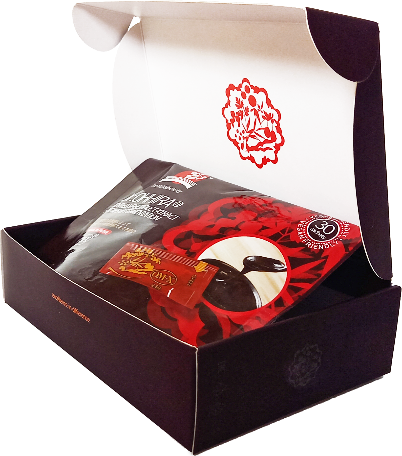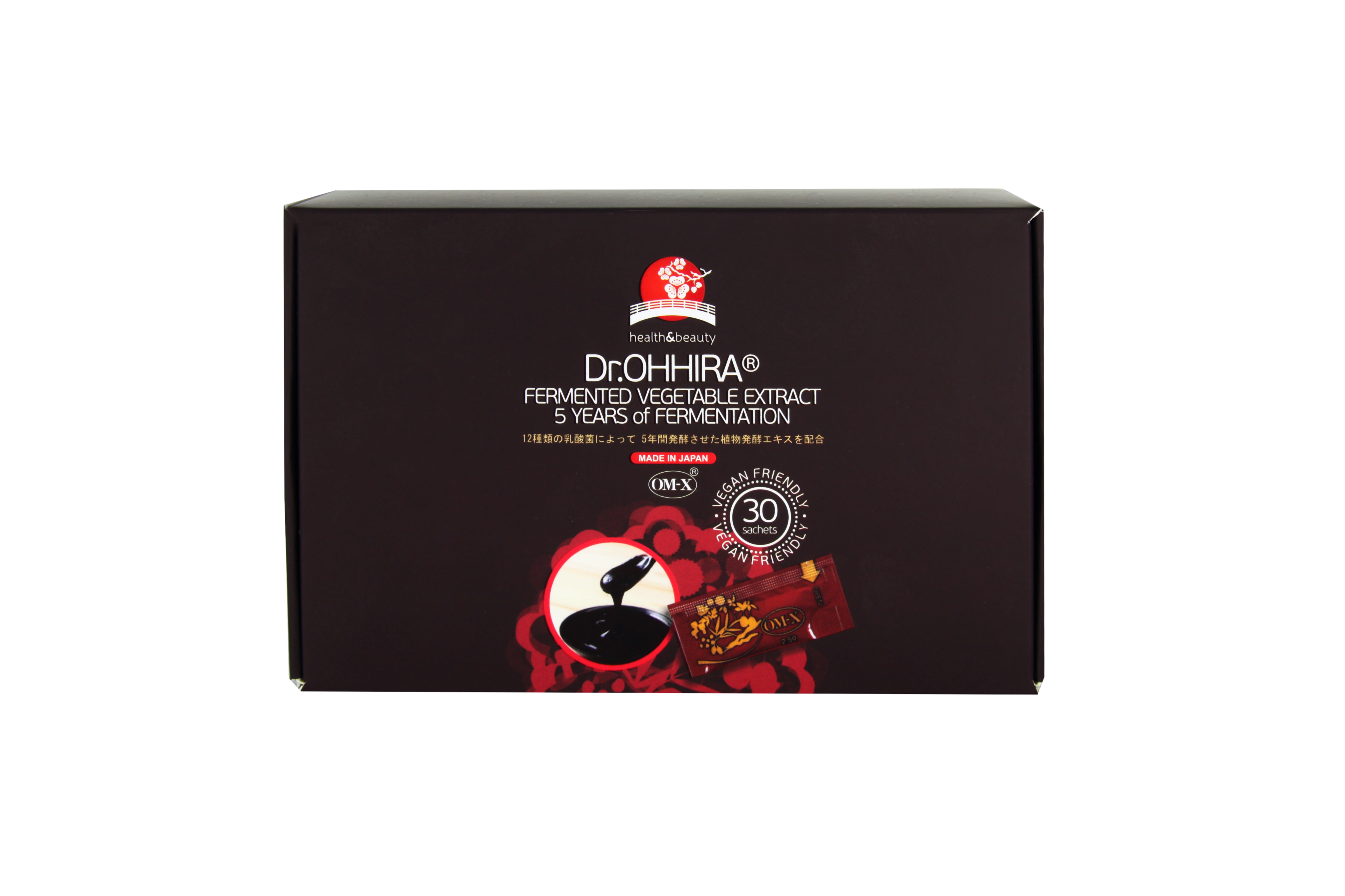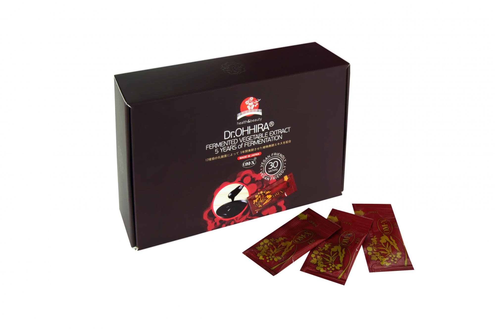 Преметабиотик 5-летней ферментации ОМ-Х® (Ohhira Mountain eXtract) создан японским микробиологом доктором Иширо Оххира (Iichiroh Ohhira). Поддерживает иммунную систему организма и способствует созданию благоприятной среды для жизнедеятельности кишечных бактерий. Запатентованная уникальная технология производства, препарат готовиться в течении 5-и лет. Три года происходит натуральная ферментация и еще два препарат выдерживается. Бережный процесс обработки, обеспечивает сохранность полезных свойств всех ингредиентов препарата. Длительный процесс производства способствует выделению большого количества органичных метабиотиков. В процессе ферментации к растительной массе, полученной из 14 растений, грибов и водорослей добавляют 12 штаммов живых молочнокислых бактерий, которые не подвергаются термической обработке. 14 растений, входящих в состав препарата: чернослив, Барбарисовая дереза, шпинат, морская водоросль Хидзики, грибы Майтаке, Красная восковица, гриб Агарик бразильский, черника, лимон Юдзу, Японский горчичный шпинат, грибы Шиитаке, инжир, морская водоросль Вакаме, бурая водоросль Комбу. Внутри пакета массой 2,5 г находиться однородная масса очень густой консистенции. Её состав - это пребиотики – ферментированная клетчатка экологически чистых, и растущих в натуральной природе растений и метабиотиков – более 550 ферментированных метаболитов.