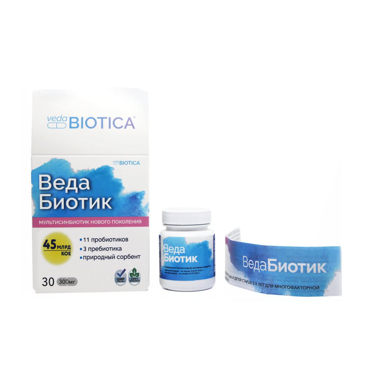 ВедаБиотик - это сбалансированный препарат мультисинбиотик в капсулах для приема внутрь взрослым и детям старше 3-х лет для многофакторной коррекции нарушений микрофлоры кишечника. Инновационный отечественный препарат, содержит 11 штаммов бактерий и профилактирует развитие многих заболеваний и продлевает жизнь человека. Для того, чтобы сохранить уникальный баланс микрофлоры современному человеку необходимо постоянно принимать молочнокислые продукты, продукты содержащих пребиотики, а также пищевые добавки, содержащие живые пробиотики (полезные бактерии). Препарат разработан российскими учеными Академгородка, который позволяет держать состояние микрофлоры под полным контролем, Уникальная формула поддерживает баланс полезных бактерий в кишечнике, в первую очередь бифидо и лактобактерий. Бактериям необходимо быстро размножаться, для этого в пробиотическую формулу введены сразу комплексные питательные вещества для быстрого размножения правильных бактерий. Продукт адаптирован для приема людям, находящимся на вегетарианском питании (целлюлозная капсула). |